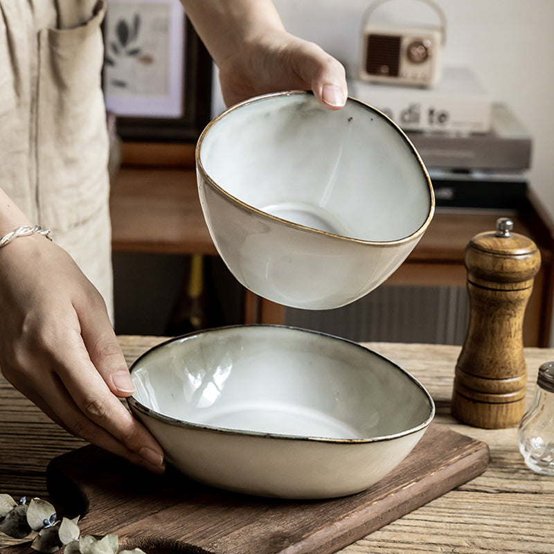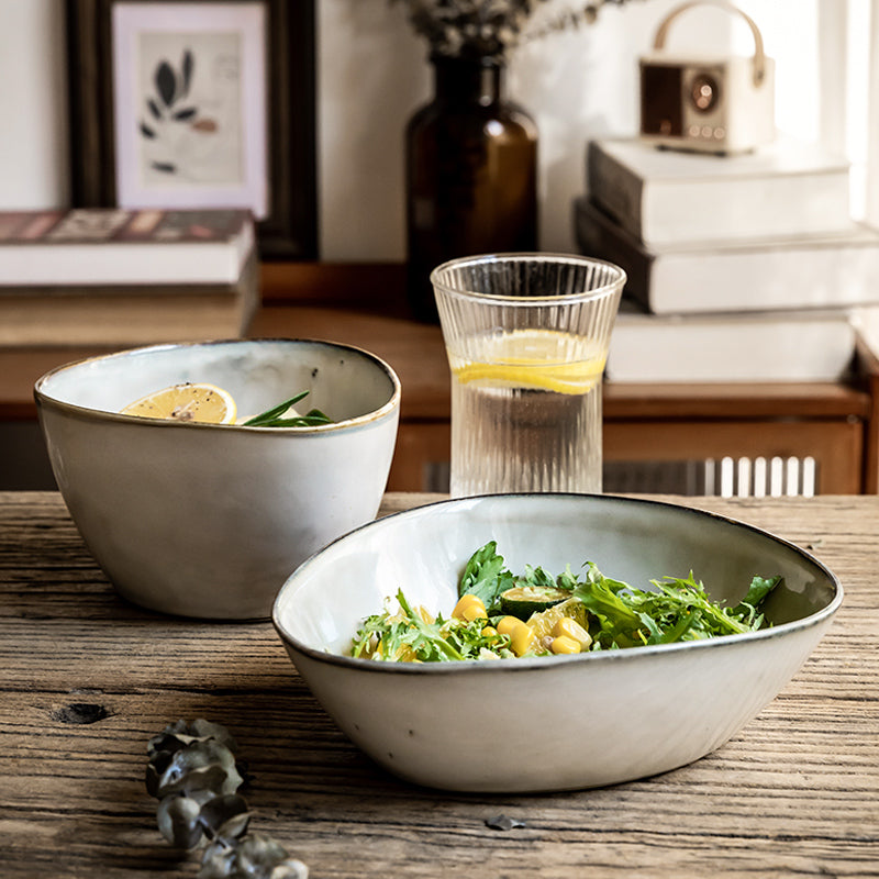 Introducing "Vintage Charm: Irregular Salad Bowls" – where timeless elegance meets modern flair. These uniquely crafted bowls effortlessly blend retro vibes with contemporary style, making them a standout addition to any table setting.
